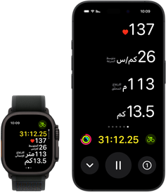 حوّل تمرينك إلى نشاط مباشر تشاهده على iPhone. واتصل بعداد طاقة لتقدير حد طاقتك الأقصى.