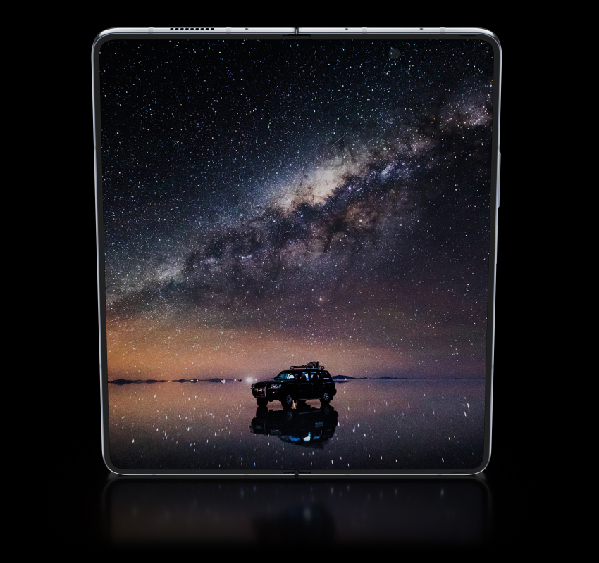 3. نالت شاشة Dynamic AMOLED 2X.المدعمة بمحسن الرؤية على هاتف Galaxy Z Fold5 اعتماد هيئة VDE Germany عن كثافة الألوان بمعدل %100 ضمن نطاق لوني DCI-P3. وهذا يعني أن الصور لن تكون باهتة وستحصل على ألوان بمنتهى النقاء مهما اختلفت مستويات السطوع. كما تستطيع الشاشة أن تحقق ذروة سطوع تصل إلى 1750 شمعة، مما يحسن درجة التباين بين الجانبين المظلم والمضيء في المحتوى الرقمي وما ينتج عن ذلك من صور أكثر سطوعاً مع معدل تباين 3,000,000:1 وهو ما يجعلك تستمتع بتجربة جهاز محمول أكثر سحراً.
