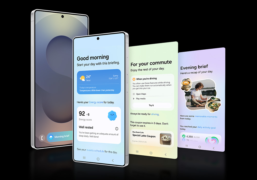 *تتطلب ميزة Now Brief تسجيل الدخول إلى حساب Samsung Account. يعتمد توفر الخدمة على البلد، اللغة، طراز الجهاز، التطبيقات. قد تتطلب بعض المزايا اتصالاً بالشبكة. يجب تفعيل الأوضاع والروتينات لاستخدام محرك البيانات الشخصية المخصص لاقتراحات الروتين. يجب على المستخدم الحصول على موافقة للدخول إلى الملفات التي تحتاج لإذن، مثل الصور، والفيديوهات، والملفات الصوتية، وفعاليات التقويم السنوي. قد لا يتم عرض الصور بحسب سياسة الكشف. قد لا يتماشى وصف الصور المقدمة في اللقطات مع نوايا المستخدم. إشعار التقويم السنوي متوفر فقط في حال تثبيت التقويم السنوي التابع لشركة سامسونج، وتوافقه مع تطبيق التقويم السنوي الذي يستخدم قاعدة بيانات التقويم السنوي الخاصة بنظام Android. الإشعارات الخاصة بالكوبونات متاحة فقط للكوبونات المضافة إلى تطبيق Samsung Wallet مع تاريخ انتهاء الصلاحية. للتحقق من نقاط Energy Score، يجب أن تكون بيانات الصحة التي تم تتبّعها عبر ساعة Galaxy Watch أو خاتم Galaxy Ring متزامنة مع تطبيق Samsung Health. النتائج التي تحصل عليها مخصصة للاستخدام الشخصي، لا للأغراض الطبية.