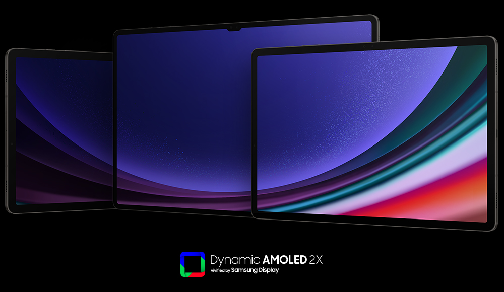 رؤية مبتكرة بانتظارك، سواء اخترت جهاز Galaxy Tab S9+, Galaxy Tab S9، أو Galaxy Tab S9 Ultra. تتميز جميع هذه االأجهزة اللوحية بشاشة Dynamic AMOLED 2X ذات الألوان رائعة والصور مميزة. بالإضافة إلى ذلك، فهي تهتم لصحة عينينك مع تقنية تخفيف الأشعة الزرقاء.