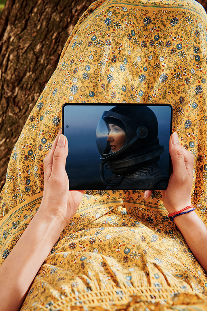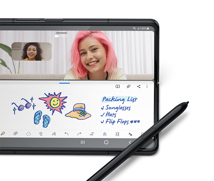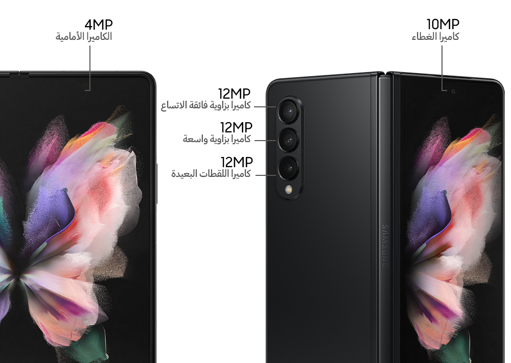 2. يبلغ حجم الشاشة الرئيسية لهاتف Galaxy Z Fold3 5G والمقاس قطرياً 7.6 بوصة على شكل مستطيل كامل، و 7.4 بوصة مع احتساب الزوايا المنحنية. تقل مساحة المشاهدة الفعلية بسبب الزوايا المنحنية.