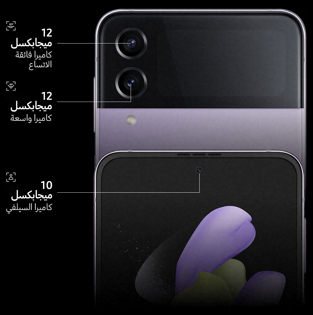 2. بالقياس قطرياً، يبلغ حجم الشاشة الرئيسية لهاتف Galaxy Z Flip4 6.7 بوصات كهيكل مستطيلي كامل و6.6 بوصات عند احتساب الزوايا المنحنية، وتقل مساحة الرؤية الفعلية بسبب الزوايا المنحنية وفتحة الكاميرا.