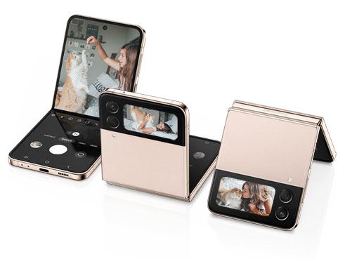 6. بالقياس قطرياً، يبلغ حجم شاشة جالاكسي Z Flip4 1.9 بوصة كهيكل مستطيلي كامل و1.8 بوصة عند احتساب الزوايا المنحنية، وتقل مساحة الرؤية الفعلية بسبب الزوايا المنحنية.