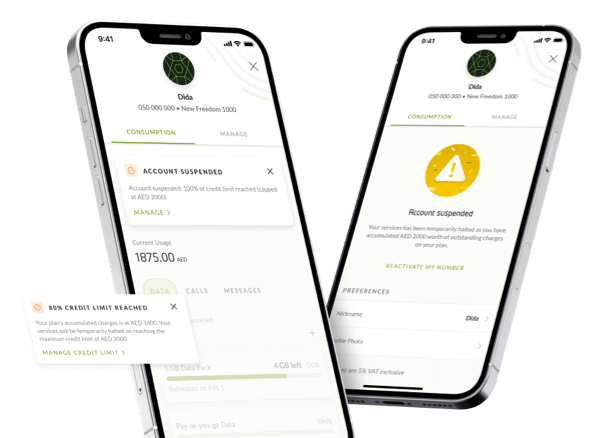ستصلك إشعارات على مراحل عن طريق الرسائل النصية القصيرة أو عبر أي وسيلة تواصل إلكتروني أخرى، وذلك عندما يصل رصيدك المتراكم إلى 80٪، و90٪، و95٪، و100٪ من حد الرصيد؛