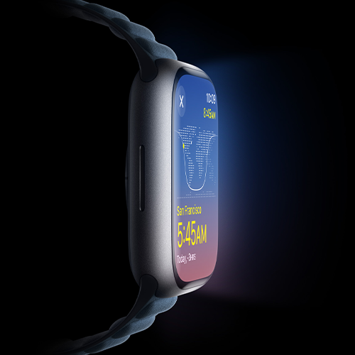 يُعزز نظام الشاشة المتطور في Series 9 درجة السطوع القصوى ليصل بها إلى 2000 شمعة/المتر المربع- ضعف درجة السطوع في Series 8، لتصبح قراءتها أسهل في وضح النهار.