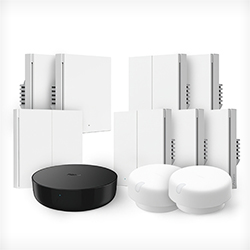 تتيح المستشعرات المتطورة المراقبة اللحظية، تلقي التنبيهات، والتحكم المركزي، بما في ذلك وضع مغادرة المنزل. تحكَّم بالإضاءة عن بعد مع مفاتيح Gang التي تتكامل مع Hub M2 للأمان