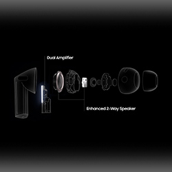 اغمر حواسك بكل تفصيل، من صوت الbass ـالعميق إلى الطبقات العالية والنقية، مع مكبر ومضخم صوت مطوّر ثنائي الاتجاه والأول من نوعه لدى سامسونج.