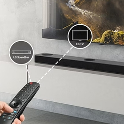 مع جهاز التحكم عن بُعد الخاص بتلفزيون LG، تصبح الراحة أكثر سهولة. يمكنك تشغيل مكبر الصوت الخاص بك، والتحكم في مستوى الصوت وأنماط الصوت * باستخدام نفس جهاز التحكم الذي تستخدمه لتلفزيون LG.