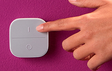 يمكنك التحكم في أضواء WiZ الخاصة بك بسهولة باستخدام زر WiZ المحمول، وهو جهاز تحكم عن بعد متعدد الاستخدامات وسهل الاستخدام.
