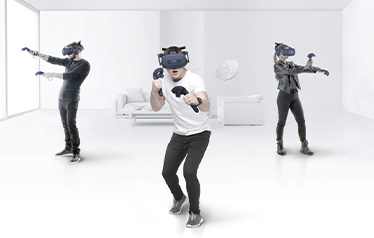 تخلى عن الكابلات باستخدام محول VIVE اللاسلكي. يمكنك بسهولة الحصول على الأصدقاء والعائلة والمحترفين في مساحة اللعب الخاصة بك.