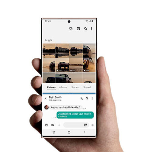 تم صنع الهاتفين لتنعم بالرقي المتمثل بالراحة المدهشة في حمله، فسواء اخترت هاتفGalaxy Note20 بشاشة 6.7 بوصة أو Galaxy Note20 Ultra بشاشة 6.9 بوصة، ستحظى بمساحة هائلة للعمل وشاشة واسعة للعب.