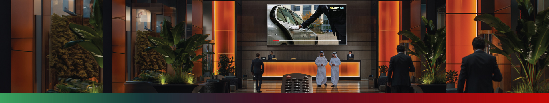 تتوفر باقات منفصلة لحلول STARZ ON للأعمال و اللافتات الرقمية. يرجى زيارة الموقع الإلكتروني لشركة آي اند أو بوابة الأعمال للمزيد من المعلومات.