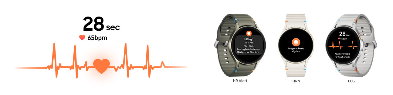 18. Availability of ECG app may vary by country or region. Due to country restrictions in obtaining approval/registration as a Software as a medical device (SaMD), ECG app only works on watches and smartphones purchased in the countries where service is currently available (however, service may be restricted when users travel to non-service countries). Check out https://www.samsung.com/apps/samsung-health-monitor for more information and latest update on service countries. It is not intended for users by people under 22 years old. Users should not interpret or take clinical action based on the device output without consultation of a qualified healthcare professional.