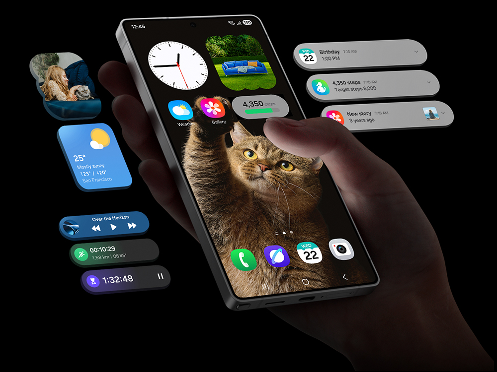 *Now Brief feature requires Samsung Account login. Service availability may vary by country, language, device model, apps. Some features may require a network connection. Modes and Routines need to be enabled to use Personal Data Engine for context-based Routines suggestions. User needs to consent to access permissions such as photos, videos, audio files, and calendar events. May not display moments depending upon exposure policy. The description of photos provided by moments may not align with the user's intent. Events schedule notification is supported with calendar apps that utilize Android calendar database and available if Samsung Calendar is installed. Notifications for coupons only available for coupons added to Samsung Wallet with expiration date. To check the Energy Score, the health data tracked from Samsung Galaxy Watch or Samsung Galaxy Ring must be synchronized with the Samsung Health App. The result is for your personal reference only and is not intended for medical purposes.
