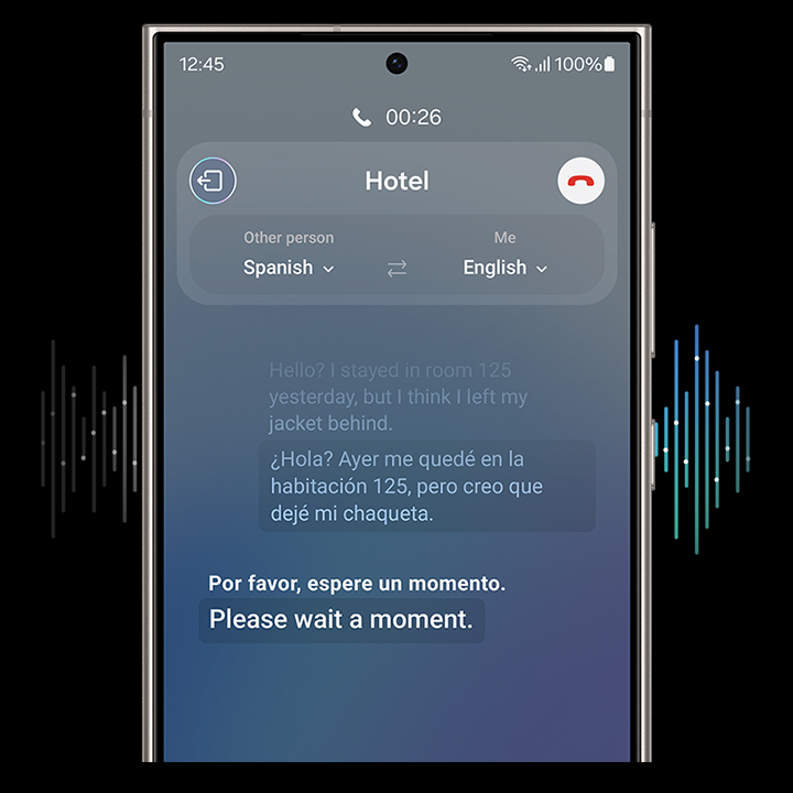 *Live Translate requires a network connection and Samsung Account login. Live Translate is only available on the pre-installed Samsung Phone app. Certain languages may require language pack download. Service availability may vary by language. Accuracy of results is not guaranteed.