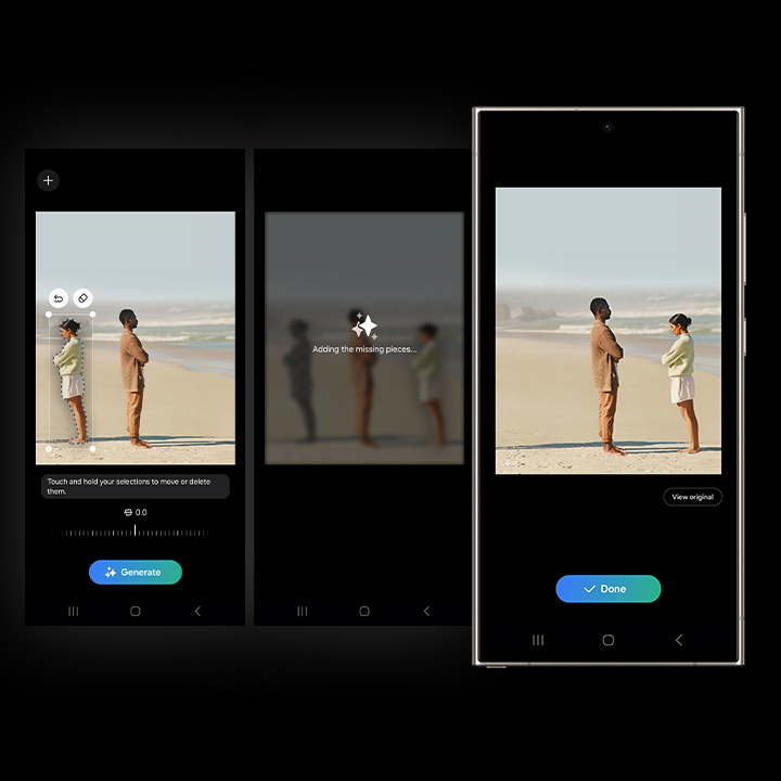 *Generative Edit requires a network connection and Samsung Account login. Editing with Generative Edit results in a resized photo up to 12MP. A visible watermark is overlaid on the image output upon saving in order to indicate that the image is generated by AI. The accuracy and reliability of the generated output is not guaranteed.