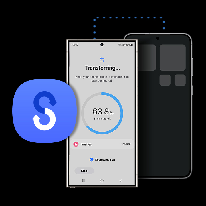 *Wired transfers from iOS require the receiving device to have Android™ 4.3 or later and the sending device to have iOS 5 or later. Transfers can be completed without a cable through a wireless connection or iCloud. For wireless connections, the receiving device must have Android™ 4.0 or later and the sending device must have iOS 12 or later. iCloud transfers require the receiving device to have Android™ 4.0 or later and the sending device to have iOS 5 or later. Open Smart Switch Mobile in “Settings” on the receiving Galaxy device or download the Smart Switch Mobile app from the Galaxy Store. For wireless transfers, download Smart Switch for iOS from the App Store on your iPhone or iPad. Data and content available for transfer may vary by transmission method.