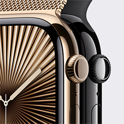 In another exciting first, you can choose from three polished titanium finishes that are as beautiful as they are tough. They’re made of aerospace-grade titanium that’s polished to a mirror-like shine. With titanium’s remarkable strength-to-weight ratio, Series 10 weighs almost 20% less than Series 9 in stainless steel while still being extremely durable.