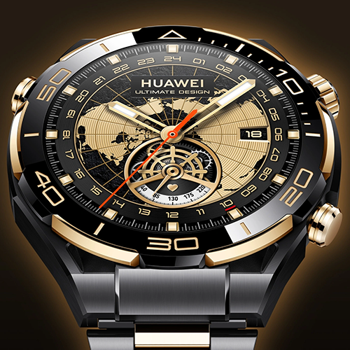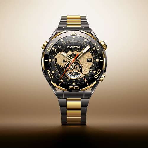 HUAWEI WATCH ULTIMATE DESIGN is your safe harbour in stormy seas, with its rudder-like black nanocrystal ceramic bezel and six 18K gold inlays, shining beacons guiding you through the night! Strap it round your wrist – it's ready to make a splash!