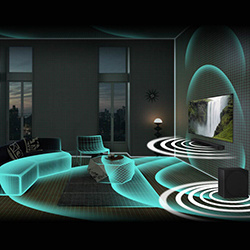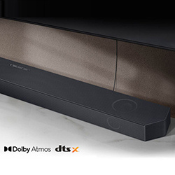 Object-based audio formats incorporated wirelessly with Samsung Soundbar.