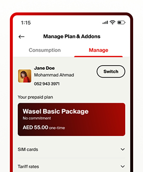 You can add any voice add-ons, buy extra data plans, enable specific calling plans instantly on the e& website or the e& UAE App