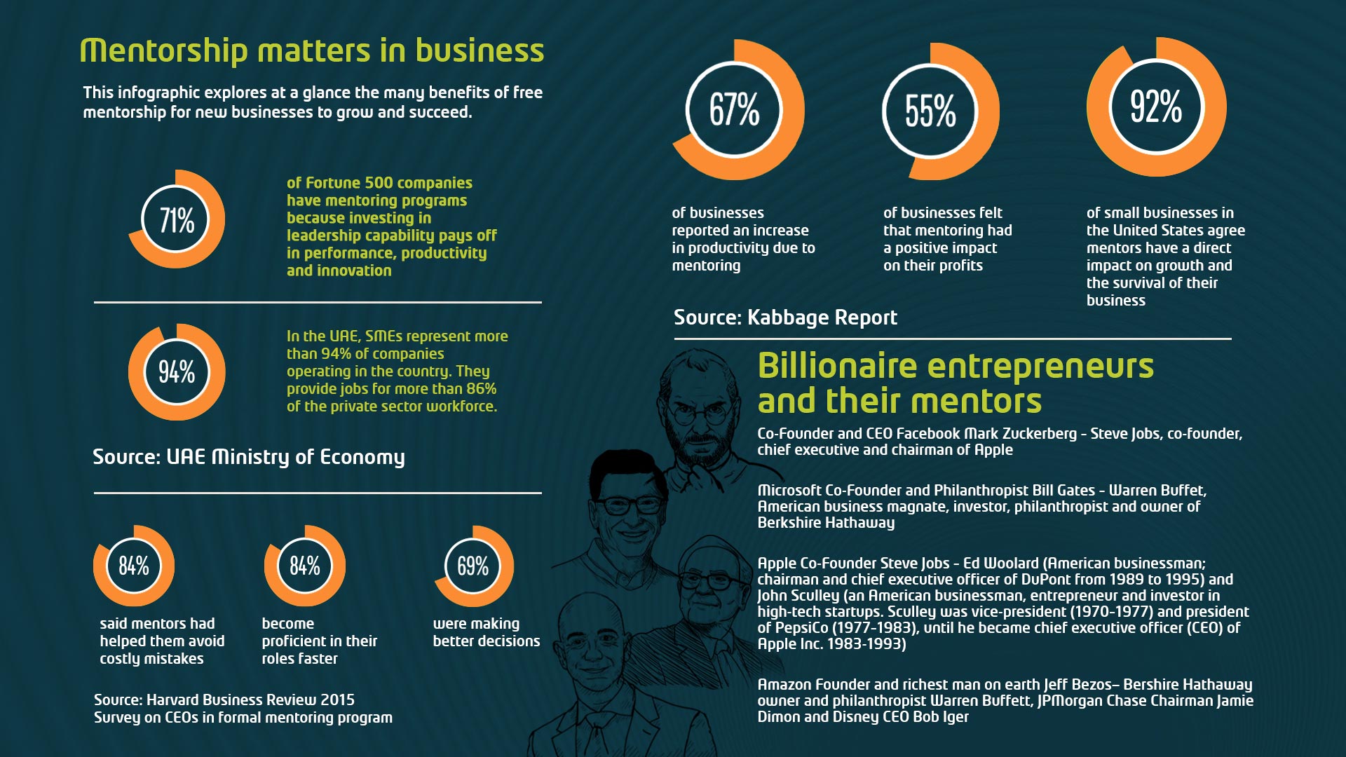 This infographic explores at a glance the many benefits of free mentorship for new businesses to grow and succeed whether they are a Fortune 500 company or a small business.