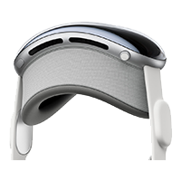 7. Testing conducted by Apple in November 2023 using preproduction Apple Vision Pro units and software. Testing consisted of full battery discharge while performing each of the following tasks: video playback, internet browsing, spatial video capture, and FaceTime. Video playback tested in conjunction with an Environment, using 2D movie content purchased from the Apple TV app. Internet browsing tested using 20 popular websites. FaceTime tested between two Apple Vision Pro units with Personas enabled. Tested with Wi-Fi associated to a network. Battery life depends on device settings, usage, network, environmental conditions, and many other factors. Battery tests are conducted using specific Apple Vision Pro units; actual results may vary.